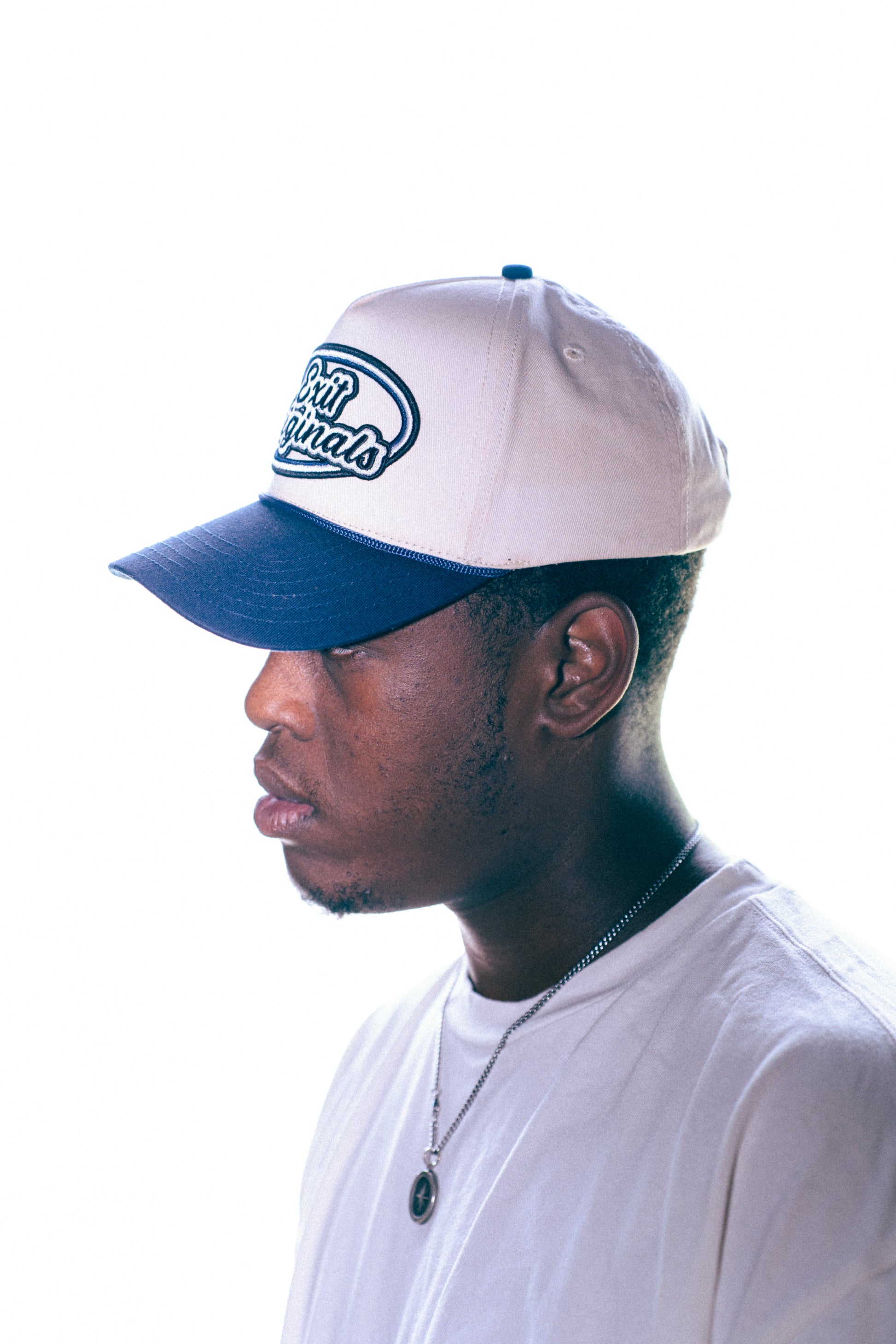 The classic trucker hat in an all new cream and navy color way. Versatile, simple, and clean.